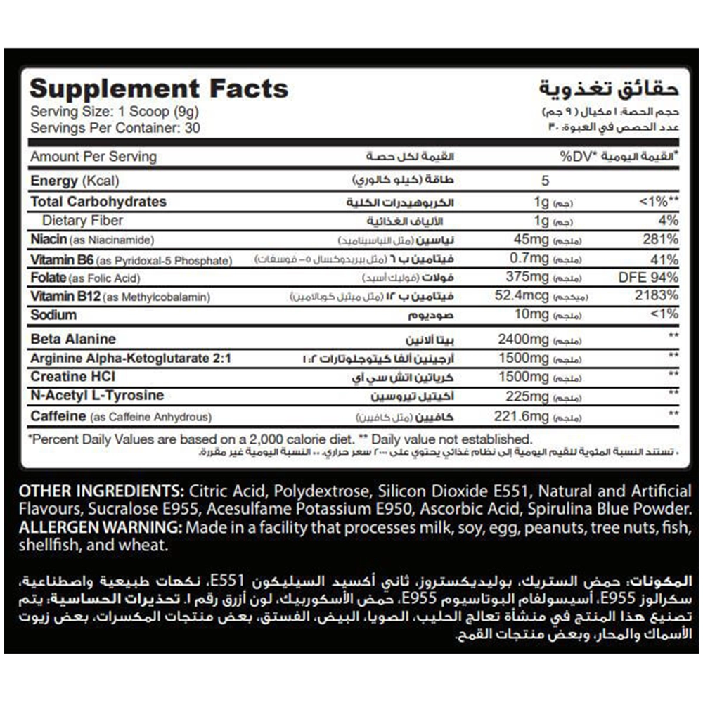 - كرياتين HCL: لدعم القوة المتفجرة.