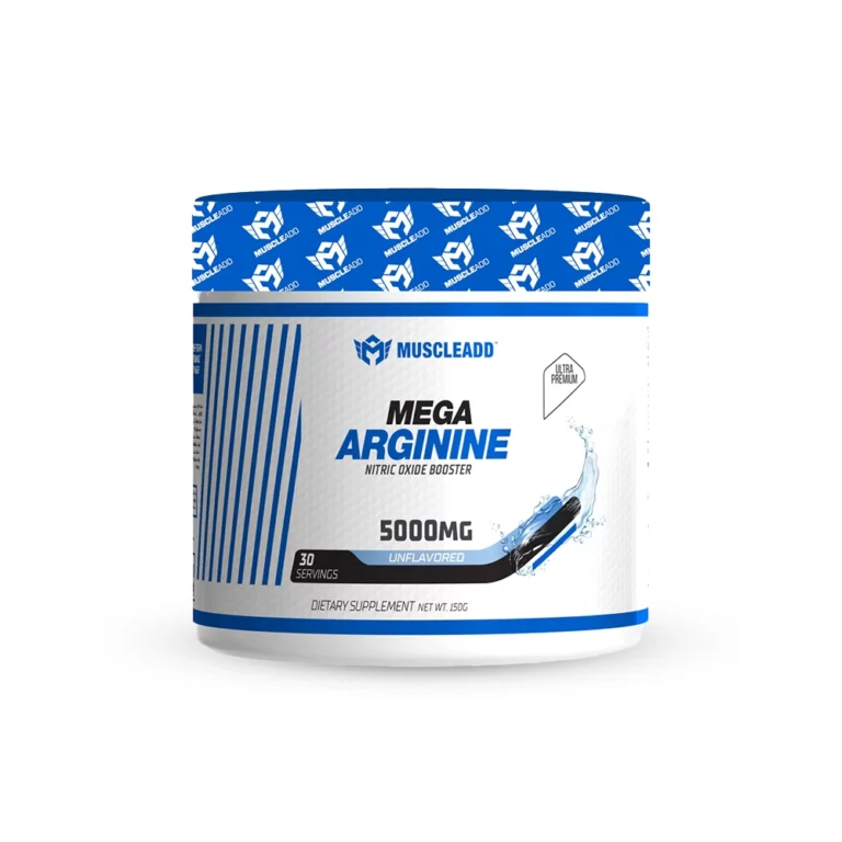 لو بتدوّر على أقصى نفخة (Extreme Pump) ممكنة وتوسيع للأوردة (Vascularity) يزيد من شكل عضلاتك، Mega Arginine من MuscleAdd هو الحل الأمثل. ده أرجينين صافي بجرعة عملاقة، مصمم خصيصاً عشان يزود إنتاج أكسيد النيتريك (Nitric Oxide) في جسمك بشكل غير عادي.