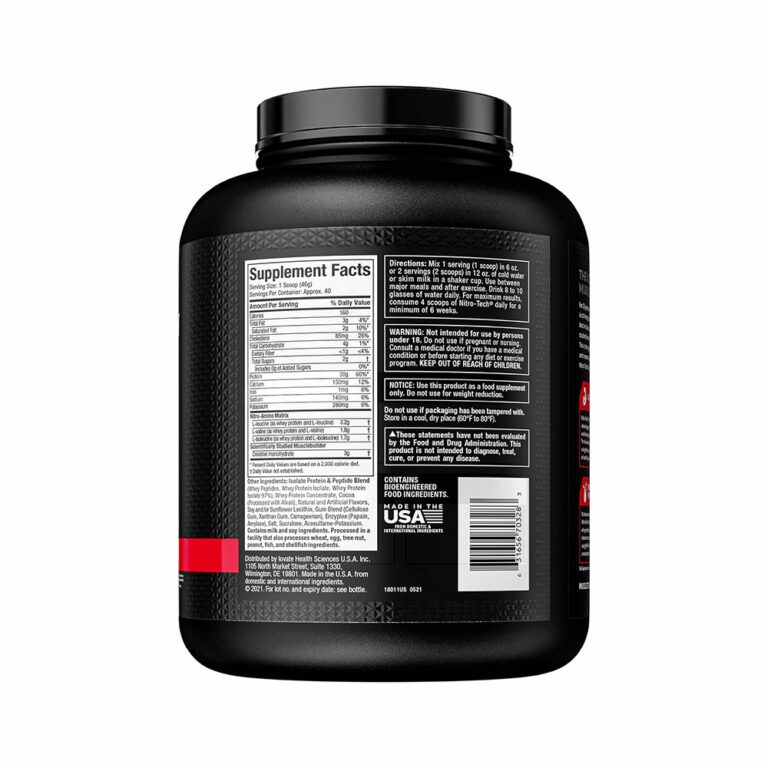 هل تبحث عن أفضل نتائج في بناء العضلات والقوة؟ Muscletech NITRO TECH هو المنتج الأسطوري الذي يجمع بين بروتين مصل اللبن فائق النقاوة والكرياتين مونوهيدرات المثبت علمياً. هذه التركيبة مصممة خصيصاً لبناء كتلة عضلية صافية أكثر بكثير من البروتين العادي وحده.
