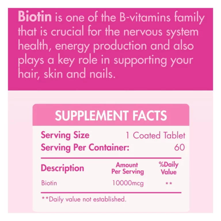 - ✅ جرعة قوية وفعالة: 10,000 ميكروجرام هي الجرعة الأقصى اللي بيوصي بيها الخبراء للحصول على أفضل النتائج في دعم الشعر والأظافر.