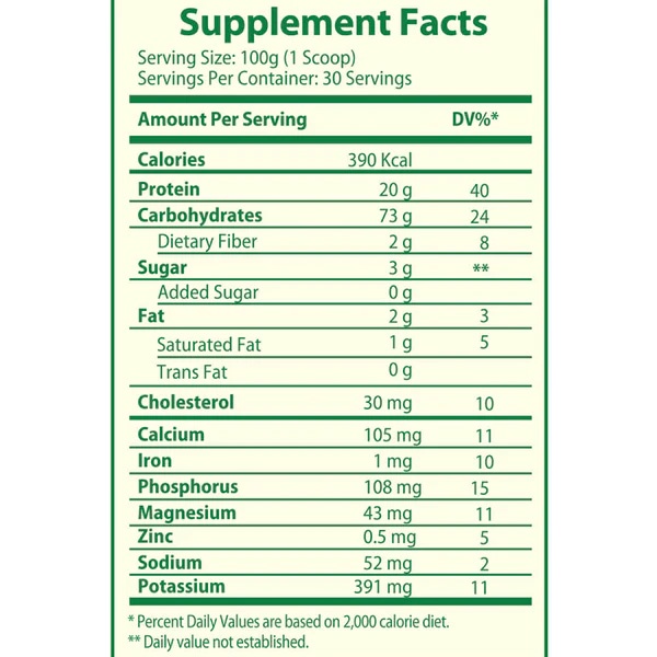 - ⚖️ تركيبة متوازنة للتضخيم النظيف: بيعتبر وجبة بديلة ممتازة! الحصة المزدوجة (2 سكوب) بتديلك 780 سعر حراري، و 40 جرام بروتين، و 150 جرام كربوهيدرات.