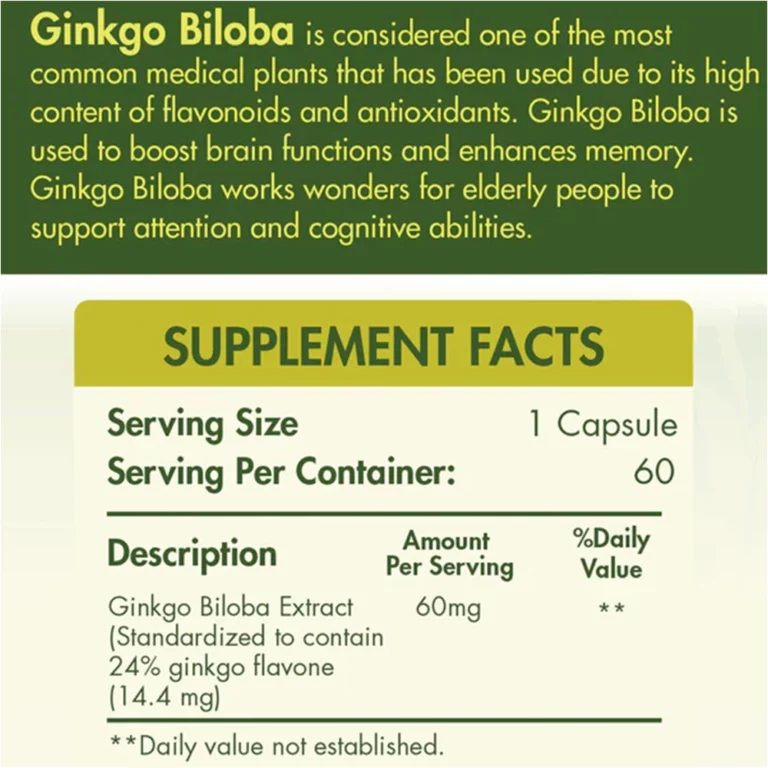 - ✅ 60 مجم في القرص: كل قرص فيه 60 مجم من مستخلص الجنكو بيلوبا النقي، بتركيز قياسي 24% من الفلافونيدات.
