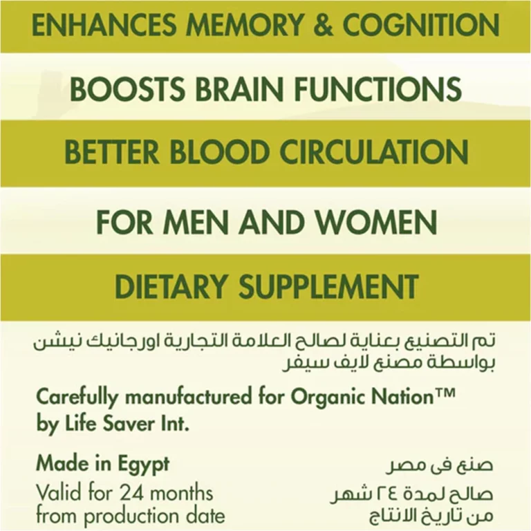 🧠 Organic Nation Ginkgo Biloba: غذاء المخ والتركيز لتحسين الذاكرة والدورة الدموية! 🧠