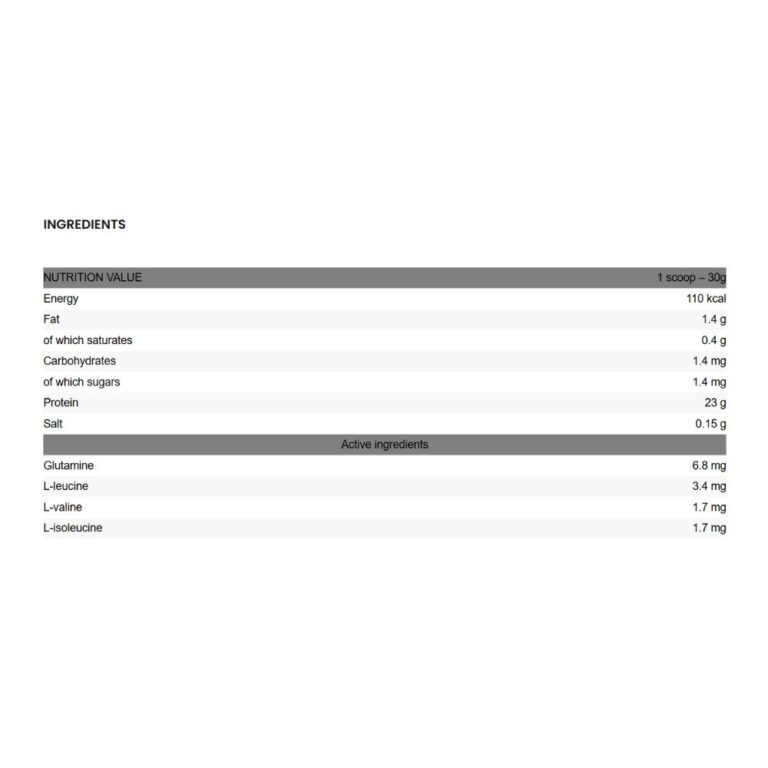 - الجلوتامين (6.8 مغ): لدعم الاستشفاء وتقليل آلام العضلات.