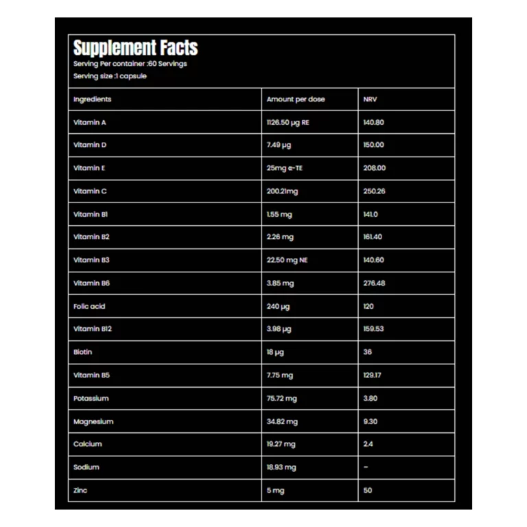 - 🔬 توازن مثالي: تم تصميمه عشان يوفر التوازن المناسب بين الفيتامينات الأساسية اللي جسمك محتاجها يومياً.
